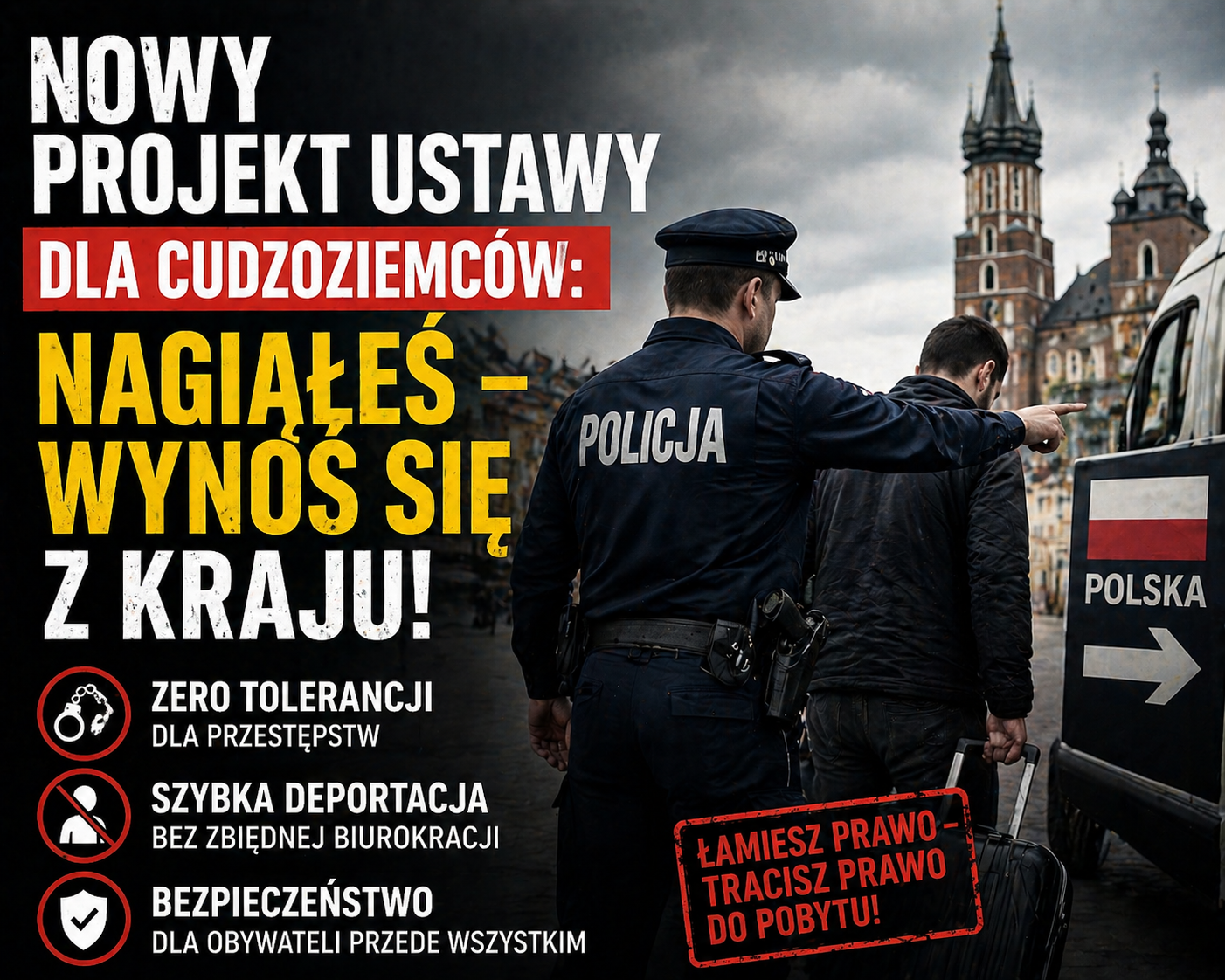 W zeszłym tygodniu partia Prawo i Sprawiedliwość przedstawiła w Sejmie projekt ustawy radykalnie zaostrzający przepisy imigracyjne, również wobec Ukraińców. Obywatelstwo polskie będzie można uzyskać po 10 latach nieprzerwanego pobytu, a nie – jak obecnie – po 3 latach. Ci, którzy mają stały pobyt ze względu na polskie pochodzenie lub posiadają Kartę Polaka, będą czekać na obywatelstwo 5 lat. Co więcej, cudzoziemiec będzie musiał znać język polski na poziomie co najmniej C1 (obecnie B1) oraz zdać państwowy egzamin z wiedzy o Polsce. Wreszcie – obniżony zostaje próg deportacji: wystarczy popełnić dwa wykroczenia administracyjne w ciągu 24 miesięcy. Przekroczyłeś prędkość, przeszedłeś w niedozwolonym miejscu, nieprawidłowo zaparkowałeś – i koniec, wracaj do siebie. Przy czym odwołanie nie wstrzymuje procesu deportacji. Świetna ustawa przeciwko namnożonym pasożytom! Oby jak najszybciej ją przyjęto!